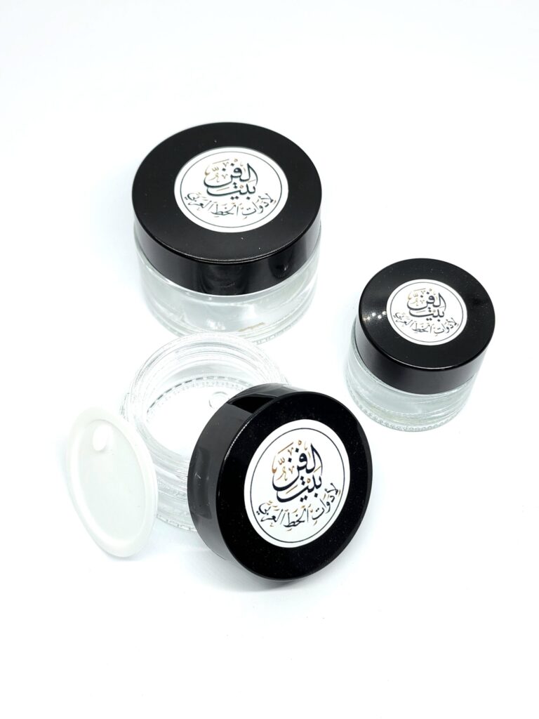 محبرة زجاجية بغطاء اسود وغطاء داخلي اضافي 3 احجام مختلفة