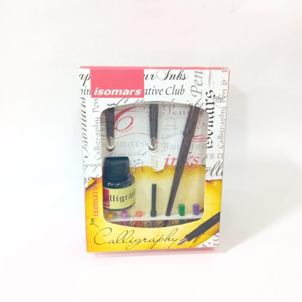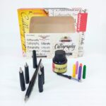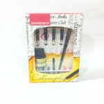 طقم قلم هندي فاخر ذو شكل انسيابي، يحتوي على 5 رؤوس بقياسات مختلفة مع 5 خراطيش حبر ملونة