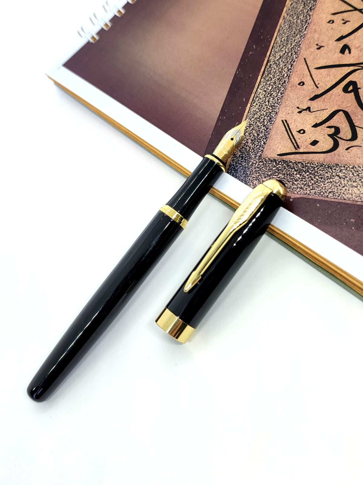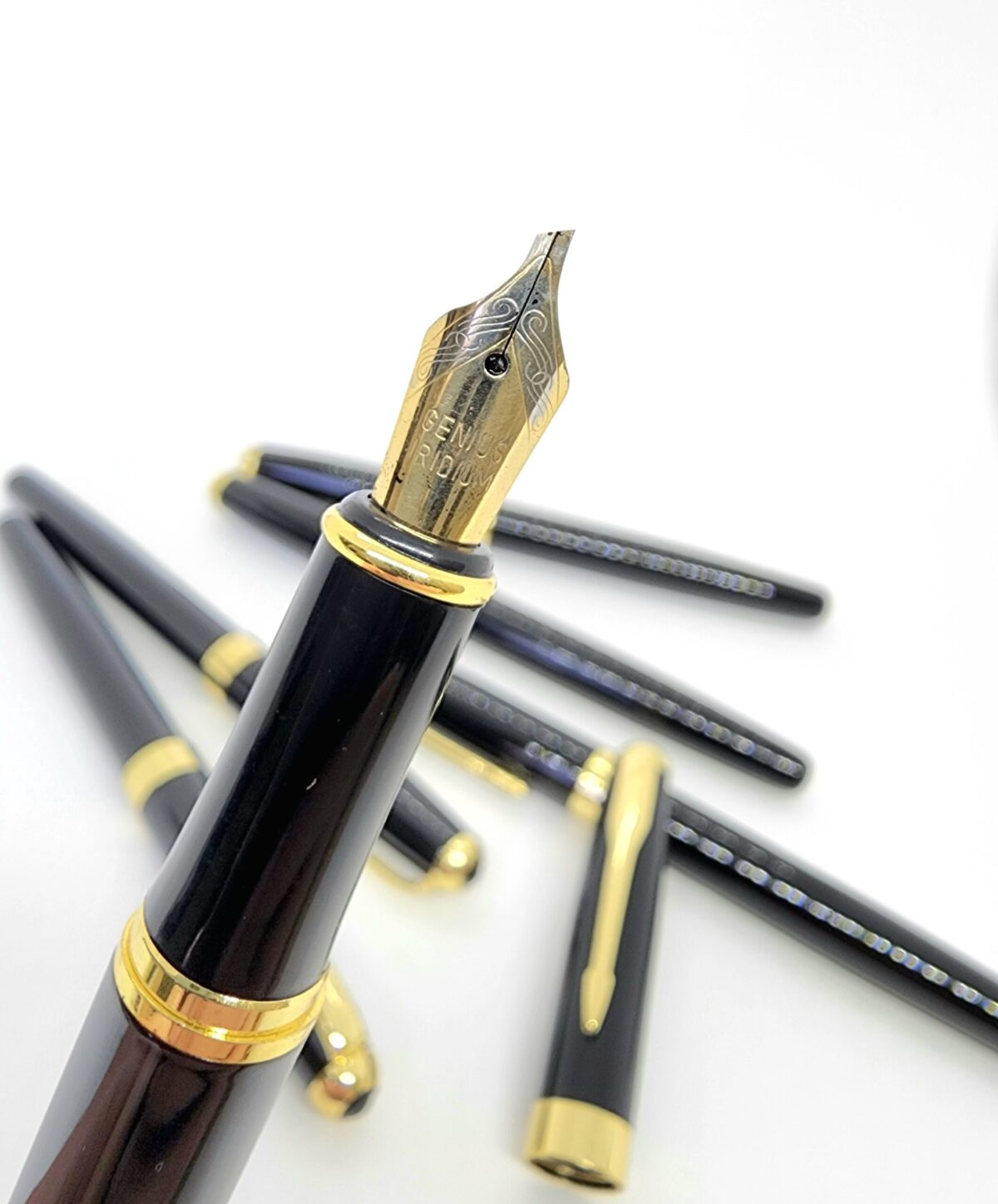 قلم جينوس اسود رأس ذهبي مع ساحب حبر داخلي – شبيه باركر