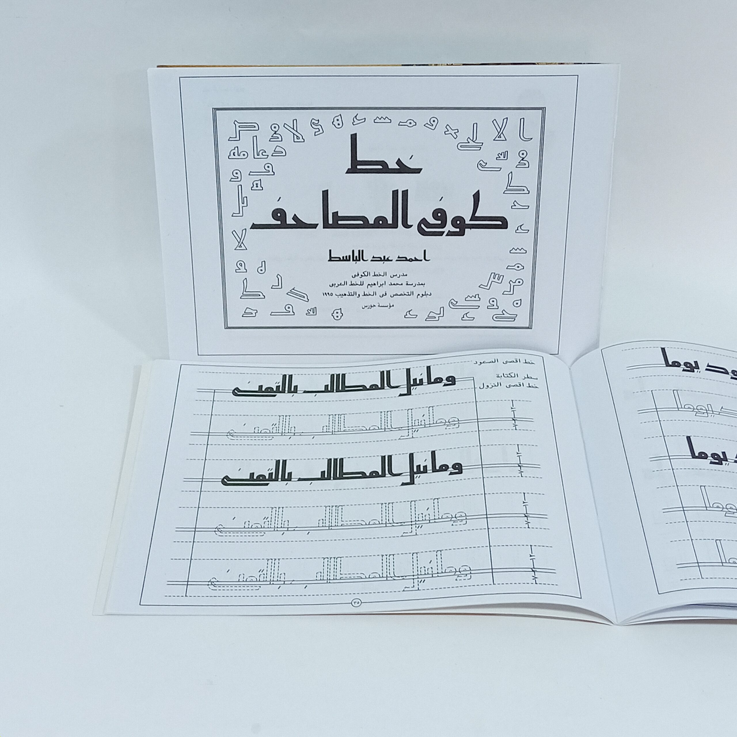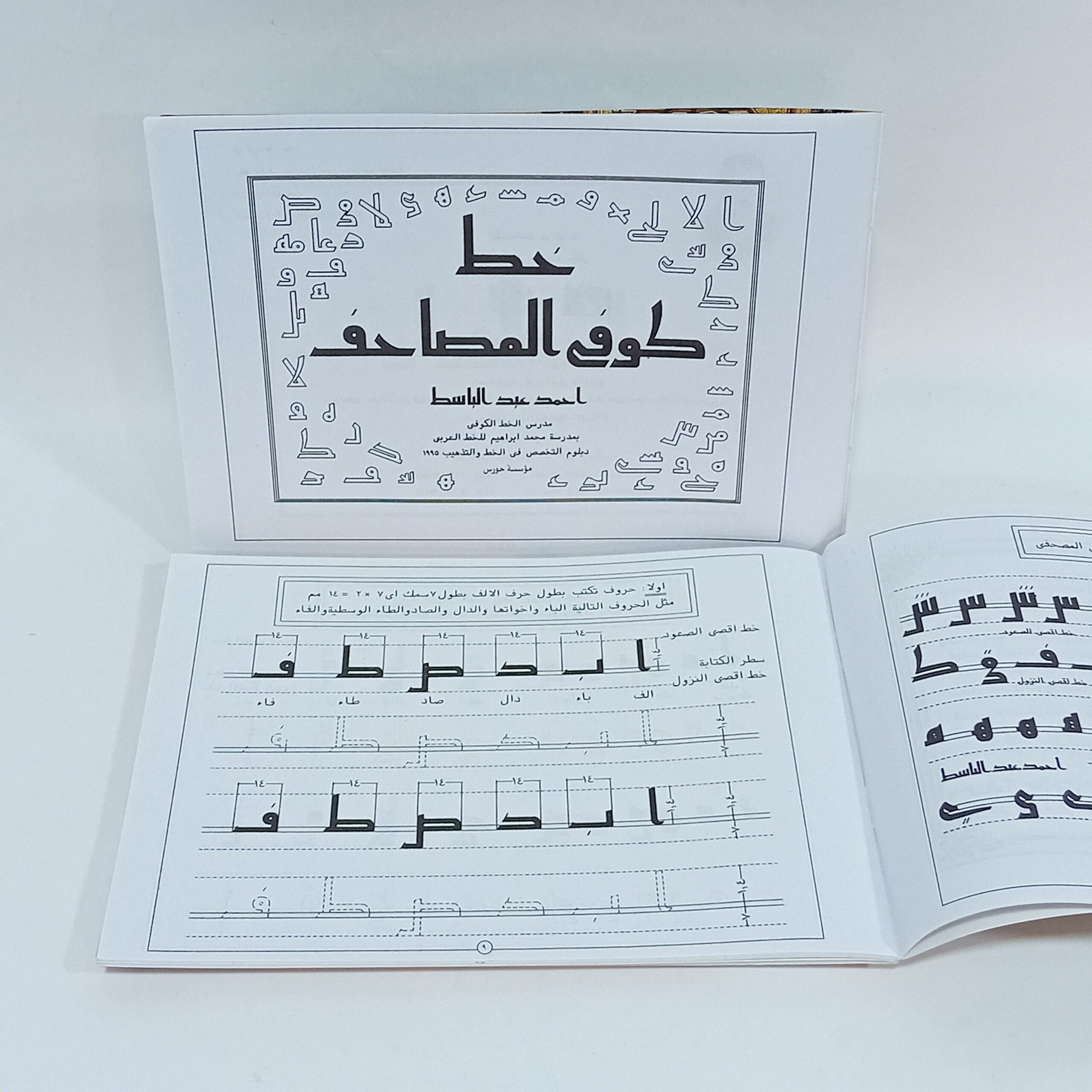 إعداد الخطاط أحمد عبد الباسط تحتوي على تدريبات عملية و قواعد واضحة تسهل على المبتدئ إتقان الكتابة بالخط الكوفي المصحفي
