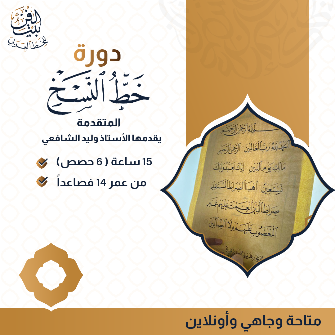كن أول من يقيم “دورة خط النسخ (المتقدمة)” إلغاء الرد